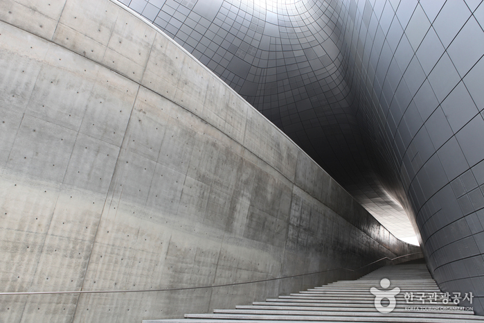 SNS상에 동대문디자인플라자의 야경 사진이 범람하는 데는 이유가 있는 법이다. 건축가 자하 하디드(Zaha Hadid)가 동대문디자인플라자를 설계하며 “이른 새벽부터 밤이 저물 때까지 쉴 새 없이 변화하는 동대문의 역동성에 주목해 곡선과 곡면, 사선과 사면으로 이뤄진 특유의 건축 언어로 자연물과 인공물이 이음매 없이 이어지는 공간을 만들어냈다”고 밝혔는데, 해 질 녘 조명이 켜진 후 건축물에 오롯이 집중할게 될 때 곡선부가 주는 역동성의 진가가 드러난다. 야경 사진을 찍기 좋은 지점은 어울림광장 진입로로, 내부의 웅장함과 건축물의 신비로운 소재가 연출하는 분위기를 담을 수 있다. 알림터와 배움터를 나누는 살림터 문 앞은 내‧외부의 현란한 곡선과 조명이 정점을 이룬다.