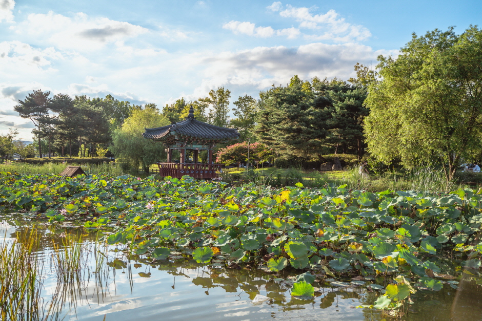 한반도를 닮은 작은 정원인 반도지에서는 예쁜 물레방아와 연꽃, 시원한 그늘이 있는 정자도 볼 수 있습니다.
