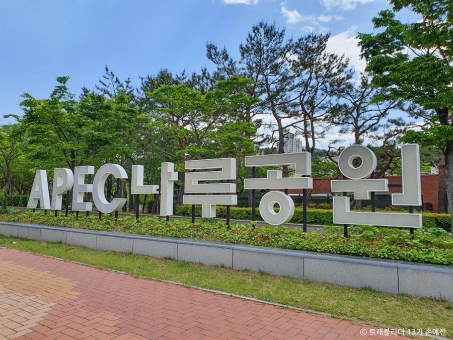 센텀 APEC나루공원은 깨끗하고 편리한 이용시설을 자랑하는 부산의 걷기 좋은 공원이다. 주말이면 피크닉과 산책 그리고 자전거 타기를 즐기는 단란한 가족들과 연인들, 그리고 친구들의 모습을 쉽게 만날 수 있다. 특히 이곳 APEC나루공원 곳곳에는 예술가의 조각 작품이 전시돼 이들을 감상하는 재미도 특별하다. 또 수영강변을 따라 걷는 산책코스도 인기인데, APEC 나루공원 입구 수영교에서 출발해 공원 끝자락에 위치한 좌수영교까지 걸어서 한 바퀴를 돌아보면 금세 부산 갈맷길 한 코스를 완주한다. 또 공원 내에 자전거대여소가 자리한다. 여기서 마음에 드는 자전거를 골라 1시간 동안 무료로 라이딩을 즐겨 봐도 좋겠다. 사고방지를 위해 헬멧도 무료로 대여해준다.