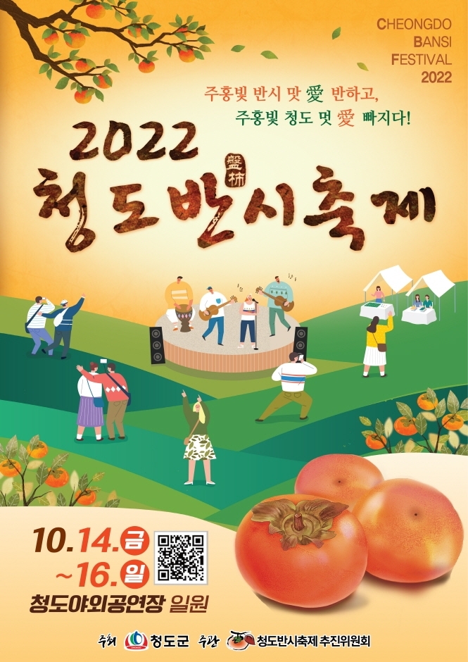 <2022 청도 반시축제>는 10월 14일부터 16일까지 청도군 야외공연장 일원에서 열린다. 청도반시는 우리나라 떫은 감을 대표하는 품종으로 상주, 영동 등에 분포하는 곶감용의 길쭉한 모양의 동시와 달리 그 생긴 모양이 납작하다고 하여 반시라고 한다. 청도반시는 육질이 연하고 당도가 높으며 전국에서 유일한 씨 없는 감으로 먹기에 편하고 가공에 매우 유리한 장점을 가지고 있다. 청도는 이러한 고장의 명품 청도반시를 알리고자 청도반시축제를 시작하였으며 현재 청도군을 대표하는 축제로 자리매김하였다.