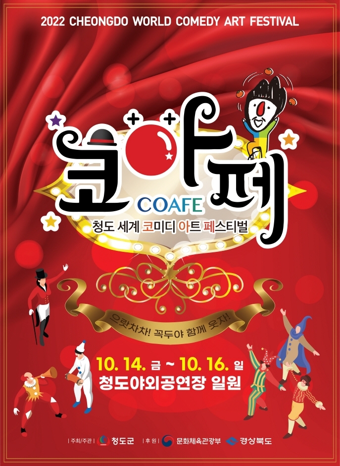 한국코미디타운 등 지역의 코미디 문화 인프라를 기반으로 한 차별화된 문화관광콘텐츠 육성으로 대한민국 코미디 1번지 청도의 브랜드 정체성 확립에 기여하기 위해 개최하는 청도세계코미디아트페스티벌은 2015년 제1회 개최를 시작으로 매년 10월, 청도야외공연장 일원에서 지역 대표 축제인 청도반시축제와 연계하여 진행된다. 국내외 초청 코미디 및 마술 공연, 전시‧체험 프로그램 등 각종 볼거리가 풍성하다.