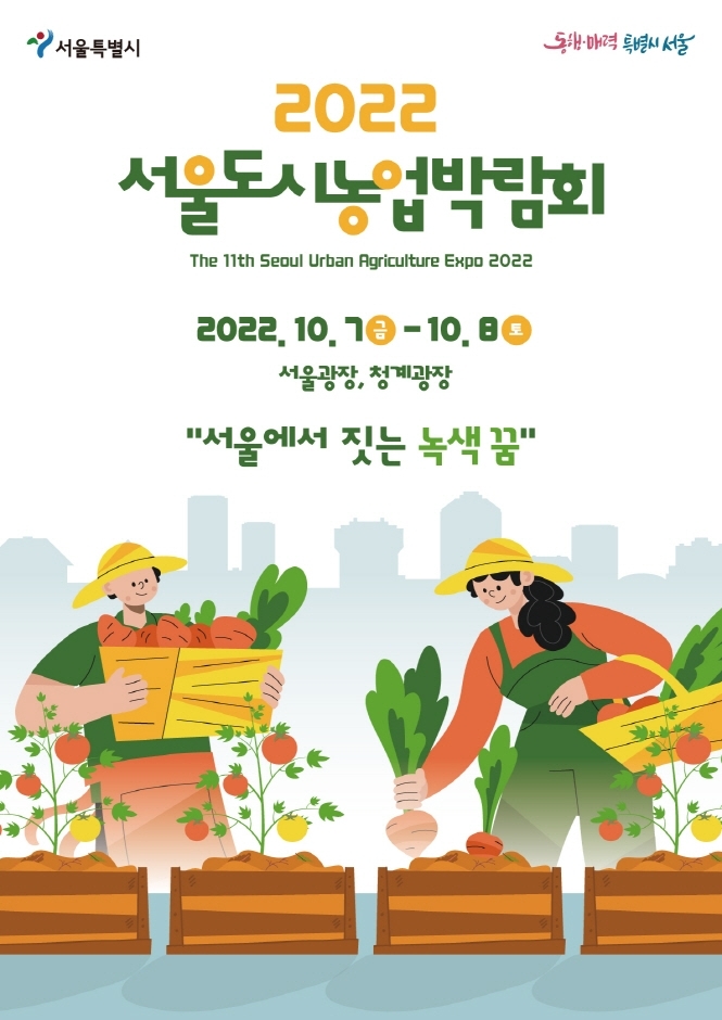 서울시에서 주최 주관 하는 2022서울도시농업 박람회가 2022년 10월 7일 (금)~ 10월 8일 (토) 이틀간 서울광장, 청계광장 일대에서 진행된다.