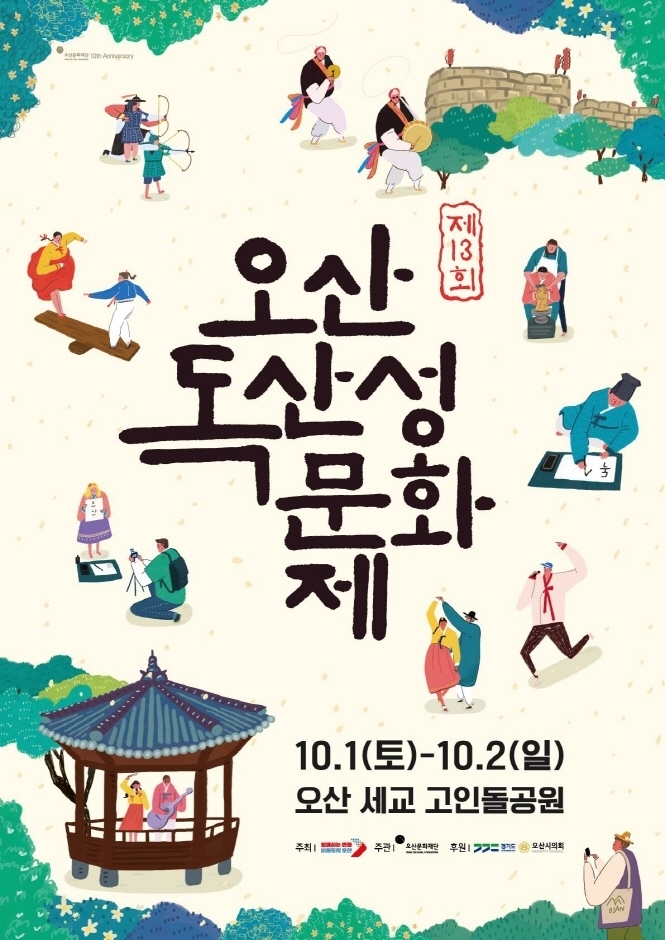 2022년 제13회 오산독산성문화제는 새로운 오산 시대를 기념하고 지역의 역사적, 문화적 가치를 시민과 함께 공유하고 소통하는 화합의 장으로 다양한 볼거리와 즐길 거리가 있는 역사 문화축제이다.