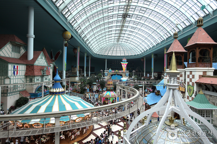 - 코스개요 : 롯데월드는 모험과 신비를 주제로 한 실내 테마파크인 롯데월드 어드벤처, 호수공원인 매직아일랜드, 쇼핑몰, 민속박물관, 아이스링크, 호텔, 백화점, 키자니아 등으로 구성되어 관광, 레저, 쇼핑, 문화를 한곳에서 해결할 수 있는 대단위 복합생활공간이다.