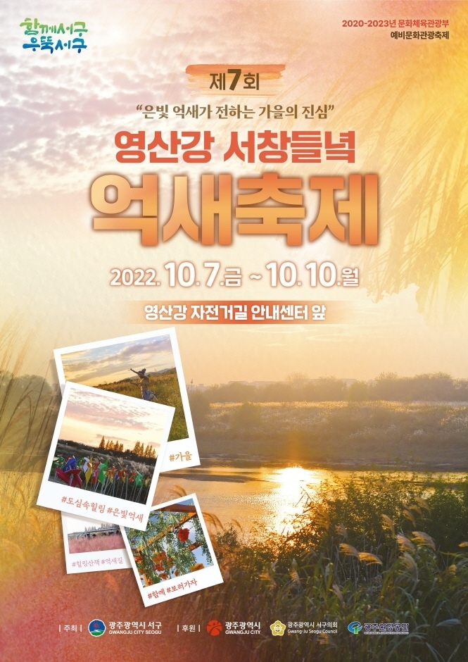광주광역시 서구에 위치한 3.5km에 이르는 광활한 억새밭에서, 낙조가 일품인 서창들녘의 가을바람을 느끼며 인생샷을 찍고, 지역주민과 함께하는 다양한 생태환경 프로그램을 체험할 수 있는 축제