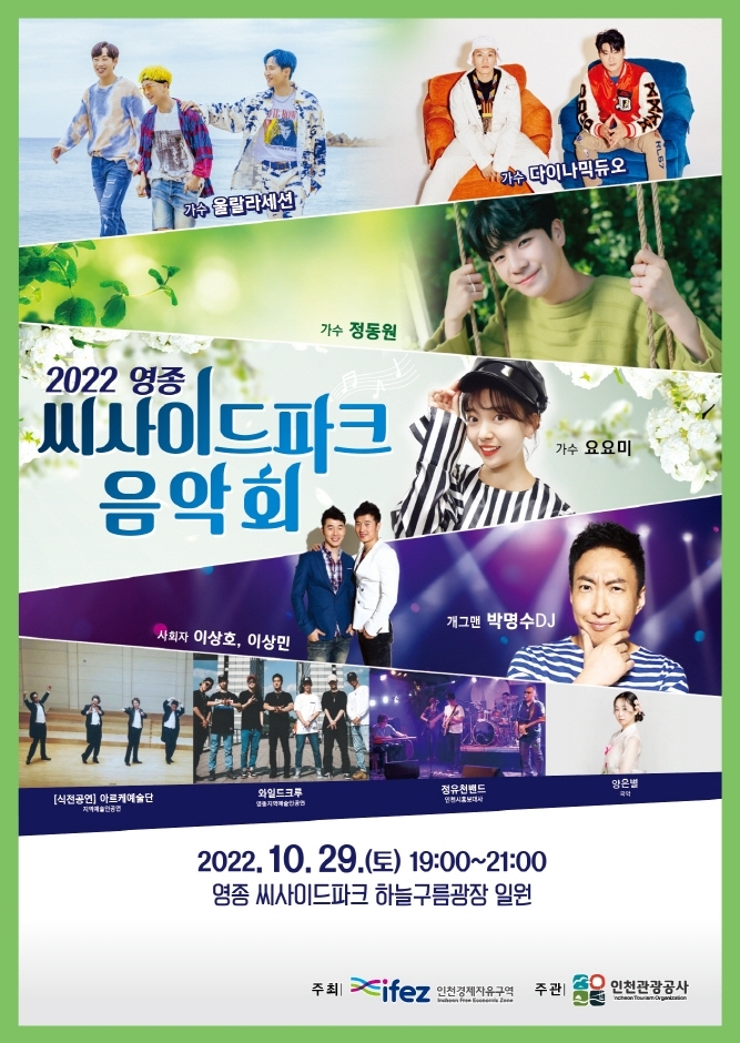 IFEZ 영종국제도시 지정을 기념해 개최되는 영종 씨사이드파크 음악회는 K-POP, 힙합, 트로트, 브레이크댄스 등 다양한 장르의 음악과 정상급 가수들의 음악축제이다. 그 밖에도 플리마켓, 클래식 악기 체험, 빛 포토존 등 다양한 체험형 부대행사도 마련된다. 영종씨사이드파크음악회는 영종국제도시 씨사이드파크 하늘구름광장 일원에서 개최된다.