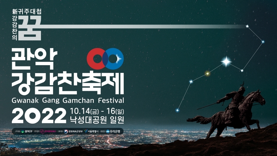 관악강감찬축제는 귀주대첩 영웅 강감찬 장군의 호국정신과 위업을 기리고자 개최되는 서울의 대표적인 역사문화 축제이다. 1002년 전 고려시대 때, 거란으로부터 나라를 지켰던 강감찬 장군의 천 년의 꿈은 우리 모두의 안녕과 평화였다. 2022 관악강감찬축제는 강감찬의 꿈을 주제로, 오늘날 그 1000년의 꿈이 이루어지기를 바라는 마음을 담는 다짐의 축제를 시작한다. 오는 10월 14일(금)부터 16일(일)까지 3일간 강감찬도시 관악구 낙성대공원에서 3년 만에 대면 축제로 여러분을 찾아간다.