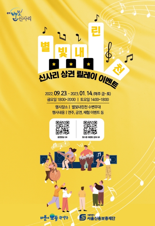 별빛내린천 신사리 상권 릴레이 이벤트는 코로나19로 인해 위축된 지역문화 예술인이 각자의 예술 활동을 자유롭게 펼칠 수 있는 무대를 제공하고 관객들과 만나 함께 교류 할 수 있는 장을 제공한다. 동시에 신사리를 찾은 많은 예술인과 지역 구민들이 지역 상권에 방문하는 계기를 제공하여 시장을 보다 더 생기있게 만들고 활성화 시킬 수 있도록 하는 행사이다.