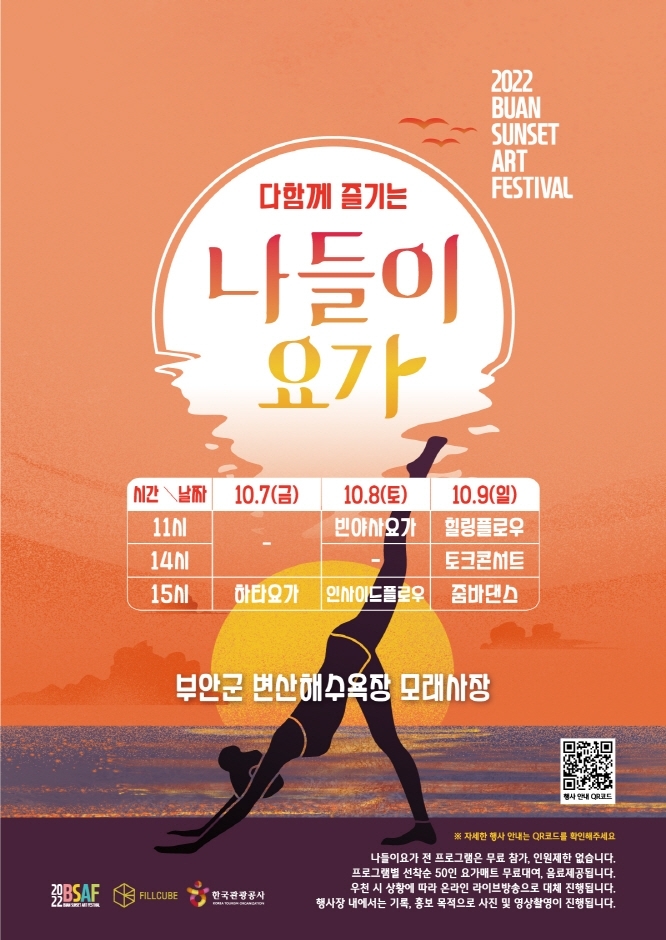 부안군 변산해수욕장에서 열리는 노을아트페스티벌에서 진행되는 나들이요가 프로그램이다.