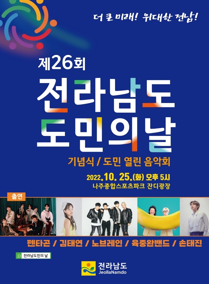 3년만에 오프라인으로 개최되는 이번 전남 도민의날 행사는 기존 의전행사의 틀을 깨고 도민이 함께 즐길 수 있는 축제형 행사로 거듭태어난다.