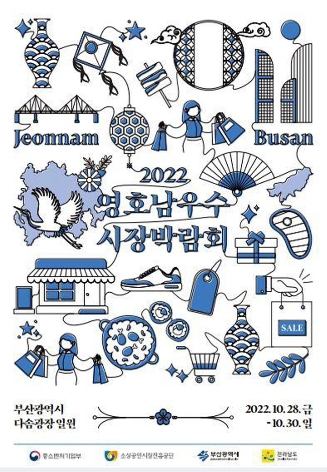영남과 호남의 우수한 농,특산물을 알리고 판매하는 문화교류 축제, 2022 영호남우수시장박람회가 2022년 10월28일~30일 부산시민공원 다솜마당에서 열린다.