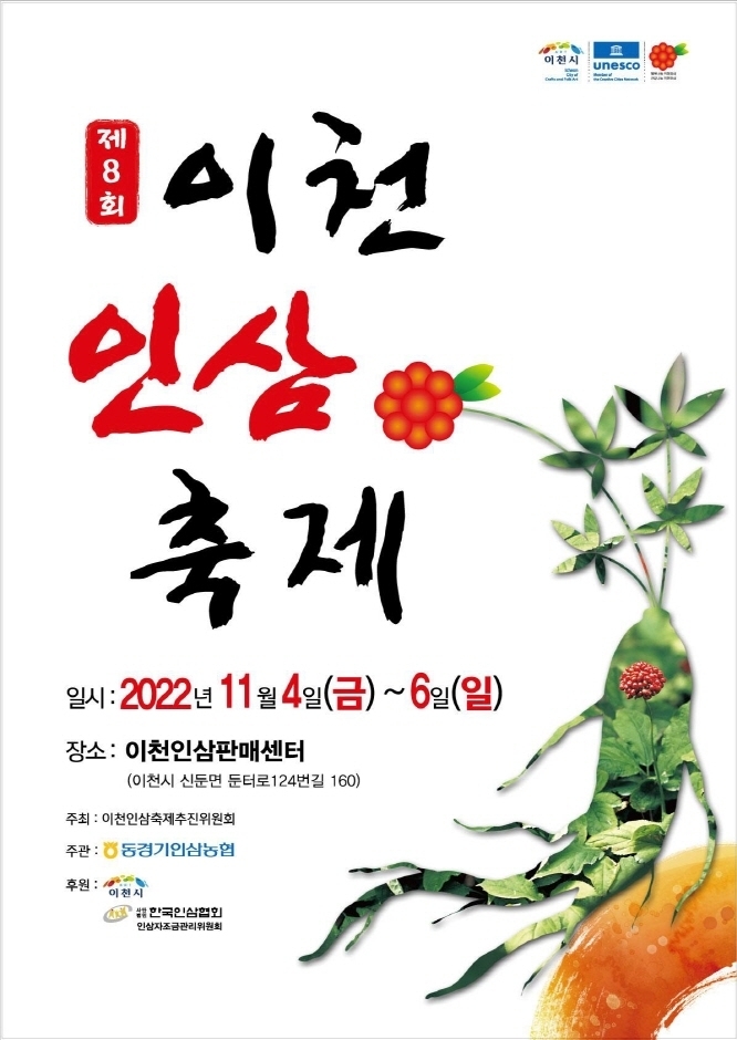 국내 최대의 인삼생산인 이천에서 키운 명품인삼을 널리 알리기 위해 2015년부터 시작된 행사로, 이천인삼의 건강한 기운을 나눔은 물론, 체험행사, 풍성한 볼거리, 즐길거리로 관람객과 행복까지 함께 나누는 건강하고 신명나는 축제 한마당이다.