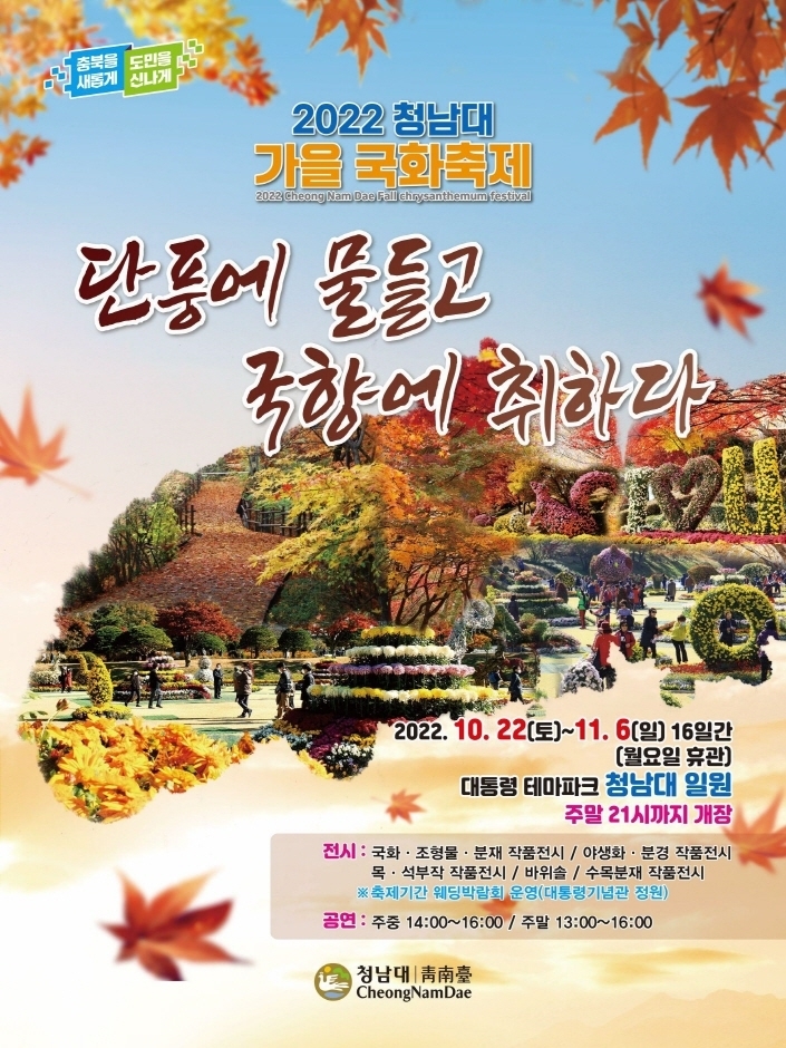 대한민국 임시정부 행정수반의 요충지로 자리매김했던 청남대에서 2022 청남대 가을 국화축제를 개최한다.