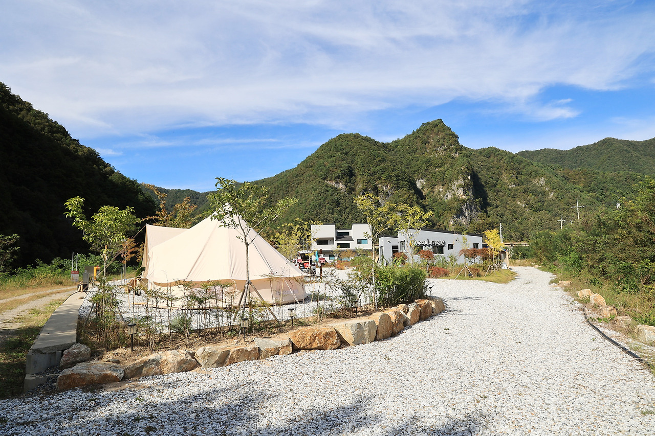 정선 개미뜰 마을 가는 길에 있다. 앞에는 제법 큰 강이 흐르고 맞은편에는 높은 뼝대가 쏫아 있다. 위로는 철로가 강을 가로질러 놓여있는 풍광이 일품이다. 캠핑장 어디서나 멋진 풍경을 볼 수 있는 뷰 맛집. 아울러 사이트마다 이격거리나 넓어 프라이빗한 캠핑을 즐길 수 있다.