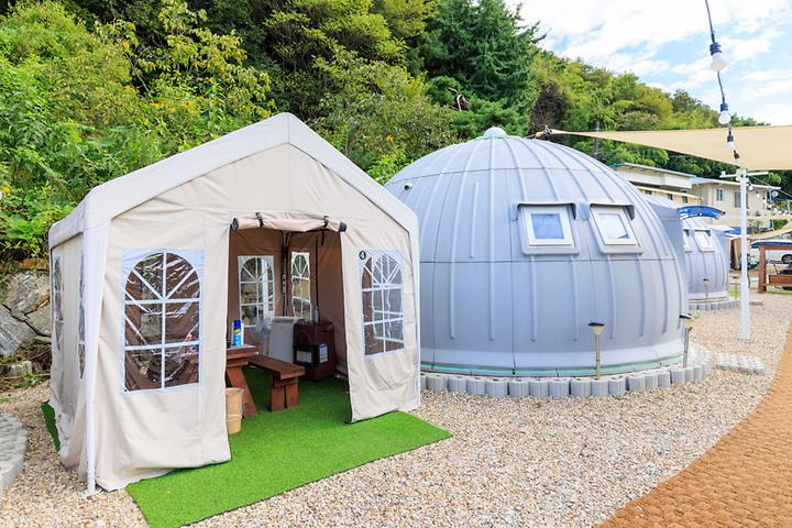 - 글램핑 : 7면 ( 내부시설 : 침대,TV,에어컨,냉장고,유무선인터넷,난방기구,취사도구,내부화장실)