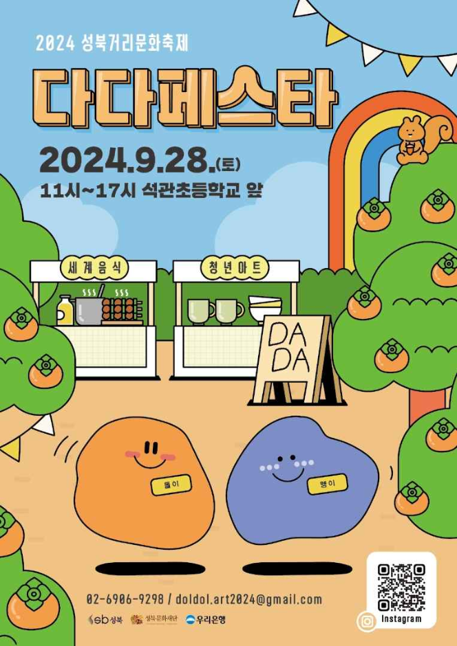 2024 성북거리문화축제 <다다페스타>는 성북구의 거리와 그 거리문화를 특색있게 소개하고 즐길 수 있는 행사로 지역의 대학, 청년, 주민, 예술가, 다문화가정, 이주민 등 다양한 주체들과 함께 만들어가는 지역밀착형 축제이다. 축제에서는 이국적인 음식들과 체험, 공연을 즐길 수 있으며, 지역청년예술가들의 작품과 굿즈를 볼 수 있는 아트마켓과 지역가게 협력을 통한 플리마켓도 함께 선보인다. 석관초등학교 앞의 거리 200m구간에서 진행되며, 축제의 마스코트로는 '돌이'와 '멩이'라는 캐릭터를 활용한 다양한 이벤트를 만나볼 수 있다.