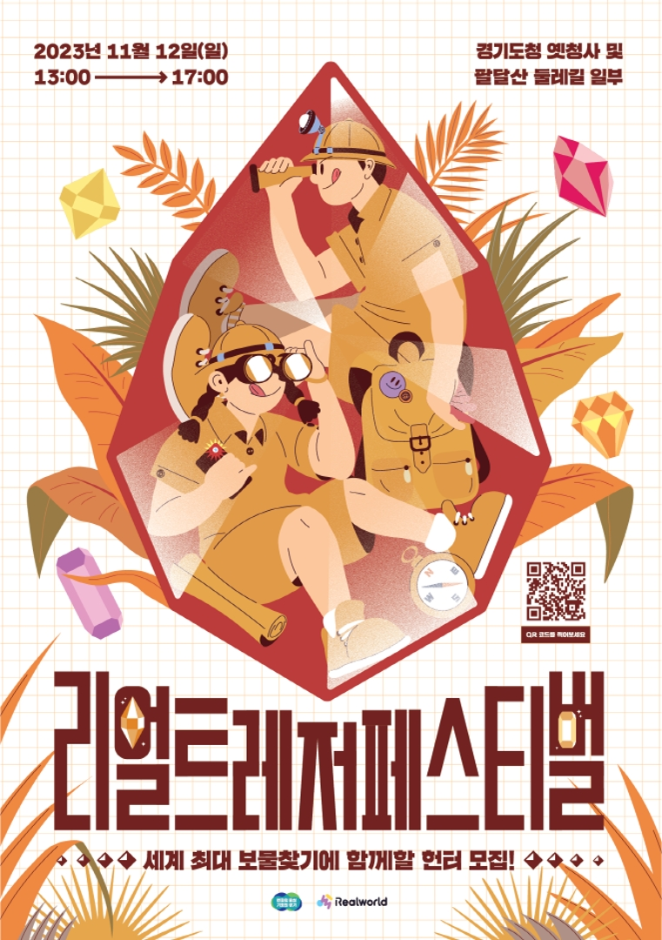 스마트폰만 있다면 즐길 수 있는 이번 행사는 경기도청 옛청사에서 진행되며 참가자는 첨단 기술을 활용한 가상 보물을 획득할 수 있다. 보물을 획득한 수, 랭킹에 따라 다양한 선물도 받아갈 수 있다.