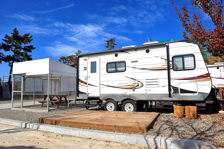 - 카라반 : 8면 ( 내부시설 : 침대,TV,에어컨,냉장고,유무선인터넷,난방기구,취사도구,내부화장실)