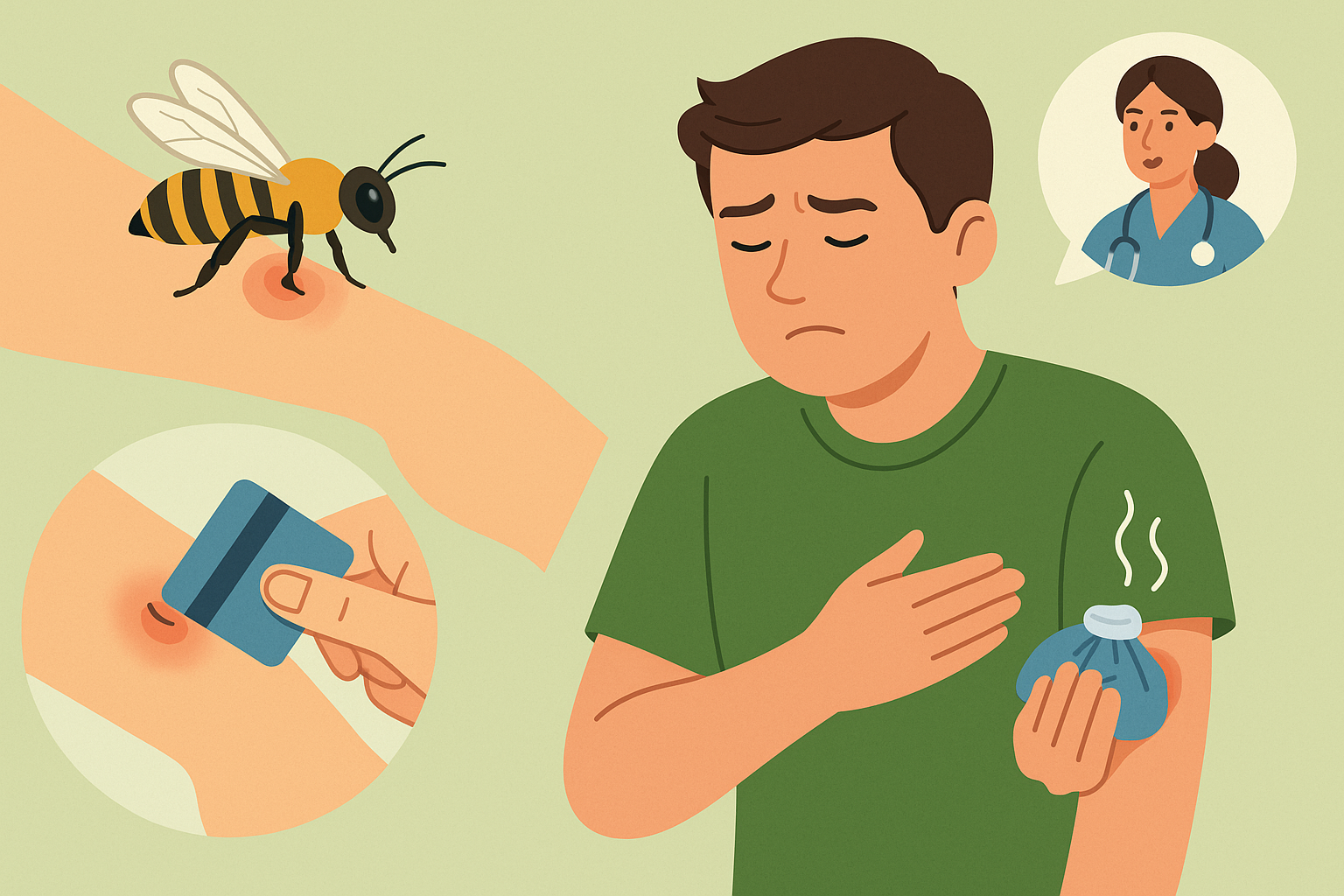 - 벌침이 남아 있다면 핀셋보다는 카드 등으로 살살 밀어 제거