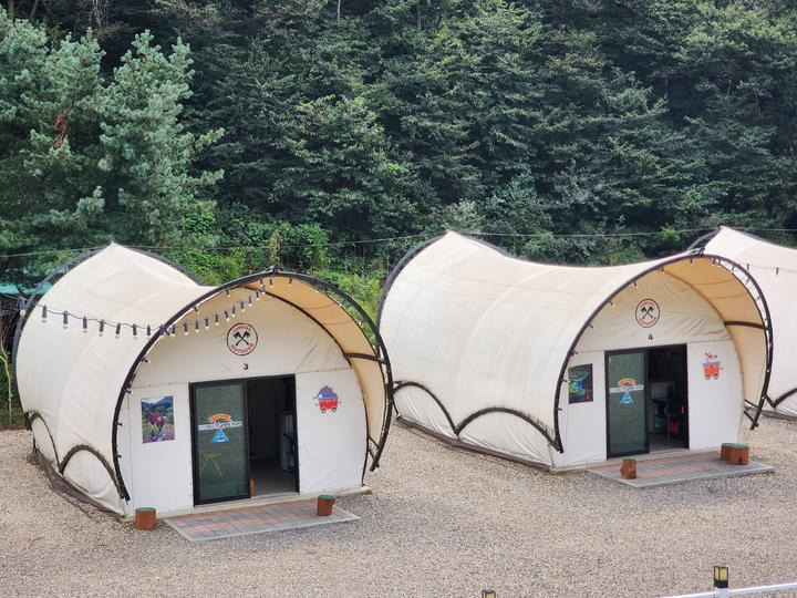 - 글램핑 : 9면 ( 내부시설 : 침대,TV,에어컨,냉장고,유무선인터넷,난방기구,취사도구,내부화장실,내부샤워실)