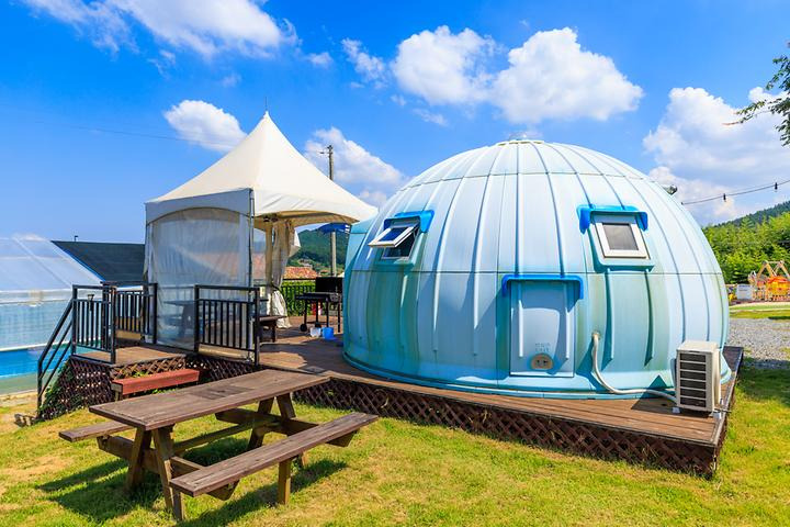 - 글램핑 : 2면 ( 내부시설 : 침대,TV,에어컨,냉장고,유무선인터넷,난방기구,취사도구,내부화장실)