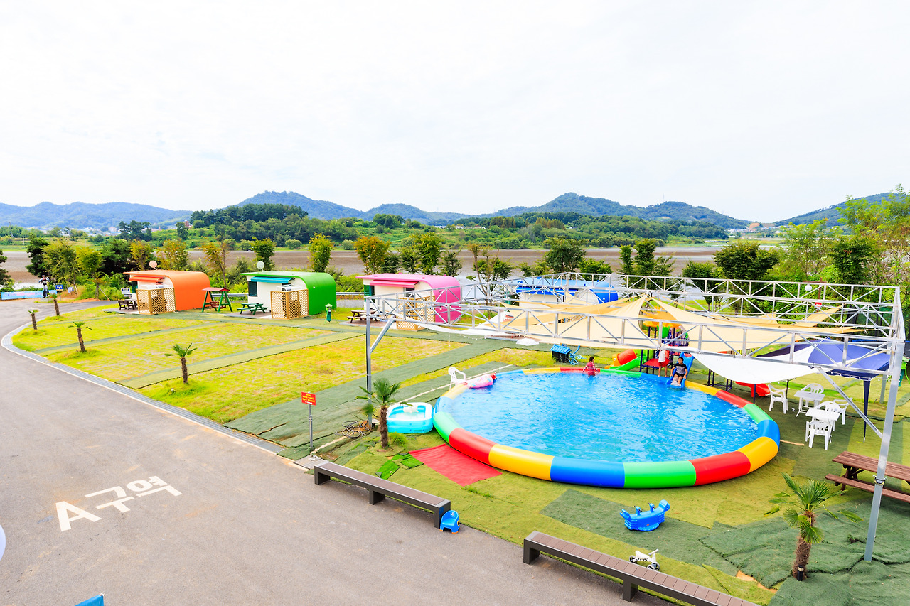 - 부대시설 : 전기,무선인터넷,장작판매,온수,트렘폴린,물놀이장,놀이터,운동시설,마트.편의점